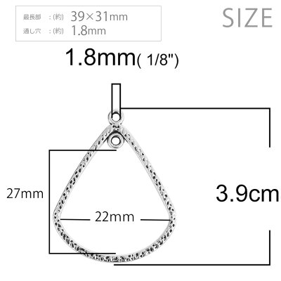 1個入 39×31mm 内27×22mm メタルチャーム カン付きドロップ 銀古美 / ペンダントトップ 滴型 涙型 なみだ型 吊り下げ ゆらゆら 輪っか ペンダントトップ アクセサリーパーツ ハンドメイド材料 亜鉛合金製【ゆうパケット対応】