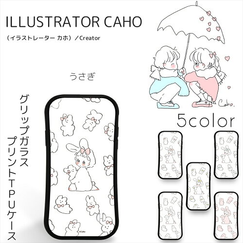 Caho グリップ ガラス プリント TPU / うさぎ スマホケース iPhoneX iPhone8 iPhone8 Plus iPhone7 iPhone7 Plus スマホカバー 携帯 ケース カバー 持ちやすい 落下防止 クビレ型 耐衝撃 丈夫 使いやすい クビレ 湾曲 手にフィット