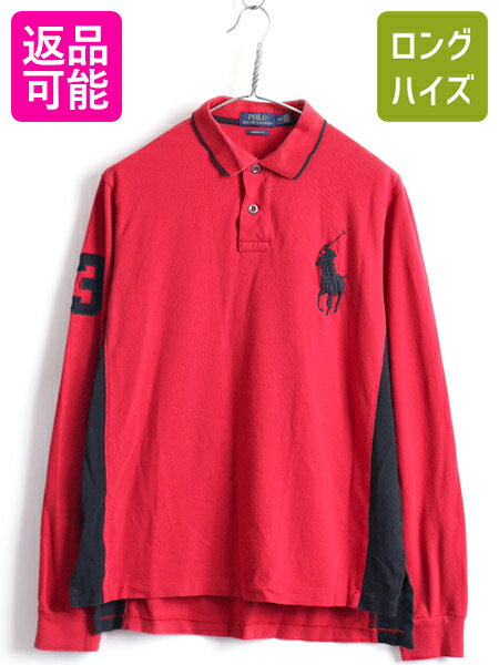 【8/30 24h限定 ポイント5倍!】 ビッグポニー ■ POLO ポロ ラルフローレン 2トーン 切替 鹿の子 長袖 ポロシャツ ( 男性 メンズ L ) 古着 長袖シャツ ナンバリング 赤 黒| レディース US古着 中古 ラルフ RALPH LAUREN 長袖ポロシャツ カノコ ポニー刺繍 カスタムフィット