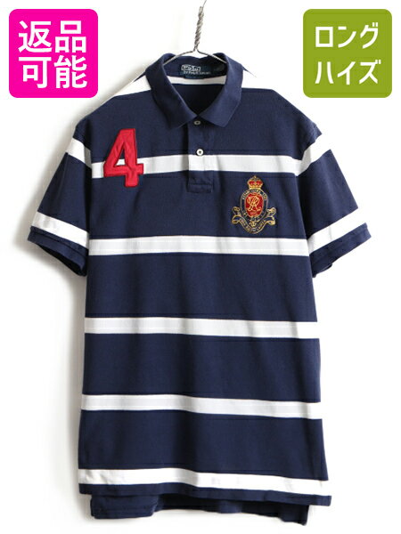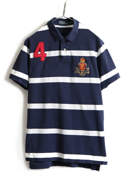 【8/30 24h限定 ポイント5倍!】 ■ POLO ポロ ラルフローレン ボーダー 鹿の子 半袖 ポロシャツ ( メンズ L ) 古着 半袖シャツ ナンバリング 2トーン カスタムフィット | レディース 中古 ラルフ RALPH LAUREN 半袖ポロシャツ カノコ コットン CUSTOMFIT ネイビー ホワイト