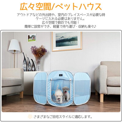 ペットハウス ペット用折り畳み サークル 八角形 折りたたみ式 ペットサークル ケージ 軽量 犬 猫 ウサギ 室内 屋内 ペットテント コンパクト アウトドア プレイサークル お出かけ用品 メッシュ 収納 広々 Lサイズ pet10l