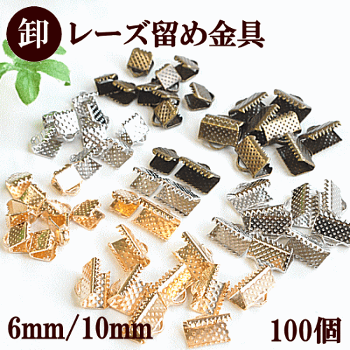 )【こちらは卸売り販売ページです】【卸売り】小さなレース留め金具6mm/10mm 100個全3色リボン等の端を挟んで留めてくれるパーツレースやリボン、ひもなどを使ったアクセサリー作りに使用する金具です。