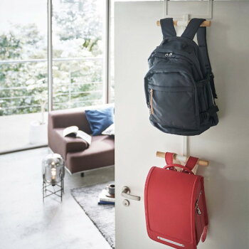 tower《 ランドセル&リュックハンガー2段 リン 》ランドセル 子供部屋 ランドセルラック ドアハンガー ハンガー 収納 ラック 洋服 吊り下げ キッズ 子供 小物収納 ランドセルハンガー 5244 5245 ブラウン 天然木 ホワイト ブラック 白 黒 YAMAZAKI タワー 山崎実業
