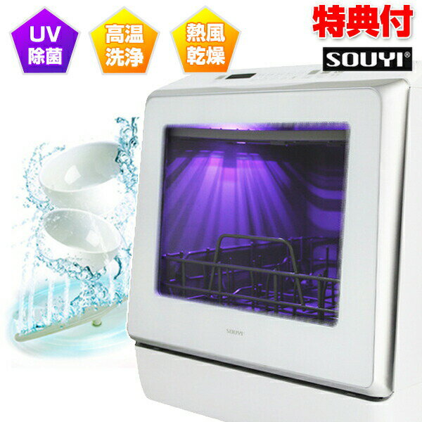 UV食器洗い乾燥機 SY-118UVソウイ 食洗機 食器洗い機 UV除菌 食器乾燥機 高圧洗浄 熱風 経済的 節約 静音 時短 お手入れ簡単 持ち手付き 白 ホワイト ■商品詳細「SOUYI UV機能付きコンパクト食洗器」は新たにUVランプを搭載し除菌機能が付いた食器洗い乾燥機です。